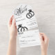 Elegant black and white wedding all in one invitation with shiny diamond ring. Personalize it with your event details.