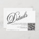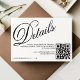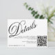 Black and white wedding details enclosure card with large elegant script font and QR code. Personalize it with your event details.