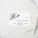 Black and white wedding RSVP response card with large elegant script font. Personalize it with your event details.