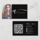 Simple white on black logo initial hair makeup photo logo qr code with a brushed script typography add your business photo . Add your social media. With an elegant signature script font, all the colors are editable , add your logo.