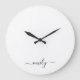 White Black Modern Script Monogram Name Large Clock