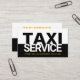 A white and black layered cover with the black piece forming the basis of a simple negative space design. Two intertwining caption remarks i.e. "TAXI" and "SERVICE" sit on these layers. ; You can change the captions to suit your own service needs. Near the base of the card lies the contact details in yellow.