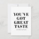 Small business black and white you've got great taste thank you card. Customize text, colors, fonts to your desired ones.