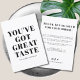 Small business black and white you've got great taste thank you card. Customize text, colors, fonts to your desired ones.