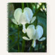 Standard size spiral bound notebook for school, home or office that features a photographic image of two, white Bleeding Heart flowers. Back cover is a solid, dark green color. A lovely, floral design! Select your notebook paper style and wire color.