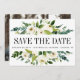 Modern and simple save the date postcard appears at the centre among foliage and you can upload your favorite photo on the back using the template.