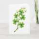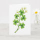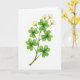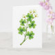 This card features a single plant stem painted in watercolor on a bright white background, keeping the scene airy and focused. The slender stalk rises diagonally from the lower left, as if reaching toward someone just out of frame, with an easy, friendly grace 💚. Along the stem, a row of four-lobed clover leaves fans out in layered greens, from deep emerald to lighter, see-through washes that suggest a soft, flexible surface ☘️. Near the top, small white flowers open like quiet little gifts, their petals lightly cupping a warm cluster of golden-yellow stamens. The gentle blending and fluid edges of the paint give the leaves and petals a tender look, like a calm moment shared between close friends. The greeting “Happy St. Patrick’s Day” appears near the upper right in a medium green, leaving plenty of white space around it. The stem, leaves, and blossoms remain the only artwork, with the brightest highlights sitting on the white petals and the pale green leaf edges.