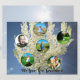 This card features a photo of a white blossoming springtime tree against a blue sky with clouds with the caption, "We Love You, Grandma". Personalize the six round photos with your own family photos. Customize the caption with your own words if desired. On the reverse side is a faded photo of the sky where your own message can be written. If you have problems with customizing, please contact me.