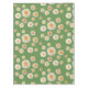 White Blossoms Green Tablecloth
