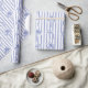 White Blue Coastal Palm Trees Bows Stripes Pattern Wrapping Paper