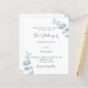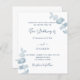A white background, decorated with dusty blue eucalyptus stems, sprigs. Personalize and andd your names and the details.
