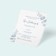 A white background, decorated with dusty blue eucalyptus stems, sprigs. Personalize and andd your names and the details.
