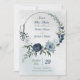 white & blue floral greenery wreath save the date