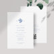 Chic with youthful elegance. This dusty blue and white flat wedding invitation card exudes a fresh, modern and youthful tone. The front features a contemporary set of fonts in dusty blue and elegant floral couple monogram, against a crisp white background. The back includes text area for RSVP prompt as well as QR code for couple's wedding website.