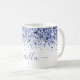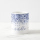 A stylish white background, decorated with dark blue faux glitter dust. Personalize and add your name written with a trendy hand lettered style script with swashes.