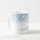 A stylish white background, decorated with blue faux glitter dust. Personalize and add your name written with a trendy hand lettered style script with swashes.