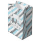 White, Blue & Gray Stripe Elephants Baby Shower Medium Gift Bag