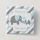 White, Blue & Gray Stripe Elephants Baby Shower Pinback Button