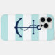 White Blue Mint Stripes Pattern Anchor Case-Mate iPhone Case