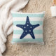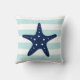 White Blue & Mint Wide Stripes Pattern Starfish Throw Pillow