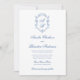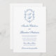 White & Blue Monogram Crest Formal Script Wedding Invitation