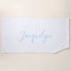 White Blue Plain Elegant Modern Calligraphy Name Beach Towel