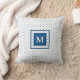 White Blue Polka Dot Pattern with Modern Monogram Throw Pillow