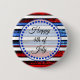 White Blue Striped Happy 4th of July Button