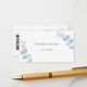 Personalize and add your names, wedding website url for your own QR code and text. A white background, blue text. Decorated with dusty blue eucalyptus sprigs, stems.