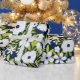 Bold blue and white floral wrapping paper.