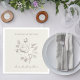 Serve wedding cake on these paper plates with a single white botanical rose illustration on a beige background. The text is presented in an elegant script font, enhancing the overall sophistication of the design. Your names and wedding date are beautifully displayed.