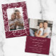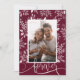 Burgundy wedding save the date cards feature elegant Forever white script overlay, white botanicals and your favorite photo on the front with your details on the back with another photo at the top. Choose High-Definition printing option for better photo quality and Matte for heavier paper. MATCHING items in our store.