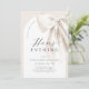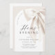 White Bow Arch Hens Evening Invitation. This sophisticated invitation features a classic ivory white bow and romantic handwritten script, perfect for a trendy and whimsical bridal shower. The elegant design with an ivory satin ribbon and coquette charm adds a touch of class to your event. Customize the text to match your event's details and create a timeless invitation for your special day.