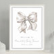 Double-Sided White Bow Baby Shower or Bridal Shower Welcome and Thank You Sign. This elegant two-sided sign features a soft white watercolor bow at the top, paired with gray fonts in a mix of script and serif typography. The design includes a simple double-line frame, with the option to customize the border by changing the bottom rectangle color.