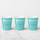 This paper cup features a graphic of white ribbon tied into a bow. Custom text allows you to add your own names or message.