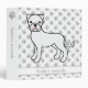 Destei's original cartoon illustration of an adorable white coat color Boxer breed dog. There is a personalizable text area that is shown on the front and on the spine. The background has a pattern of gray dog paw prints. This cute binder makes a nice way to store your dog's veterinary records and other important papers.