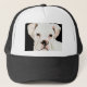This hat shows a reproduction of my original watercolor painting of "White Boxer".