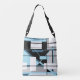 White Boxes in Blue, Gray, Black Geometric Design Crossbody Bag