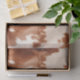 The cowhide leather details are simulated in the artwork. No actual cowhide or leather will be used in the making of this product.