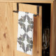 This white kitchen towel features a geometric pattern of red-shouldered hawks.