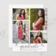 Be proud, rejoice and showcase this milestone of your favorite grad! Send out this girly, stunning, simple, modern, personalized 4 photo collage budget announcement invitation for an event to remember. A fun, playful visual of soft gray script handwriting and cute, playful hearts, along with her name, class year, and school and 4 photos of your choice overlay a white background. Personalize the custom text with your grad’s name, school and class year on the front. On the back, add your personal note, next school she’s attending, party information, etc. on the white background. Guaranteed to add stylish fun to their special occasion!