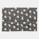 Illustrated white rabbits, tulips, red flowers, and leaves on a gray background for spring and Easter.