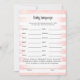 Enjoy playing this Baby Language baby shower game on soft, pink and white watercolor stripes background. Cute, white, bunny rabbit on back with templates created for you.