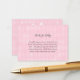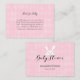 This is a Books for baby, baby shower enclosure game. On back, a white Bunny Rabbit above "Baby Shower" with baby girl pink, diamond argyle background.