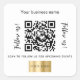 A stylish, classic white background. Personalize and add your business name, your own qr code to your weburl and business logo. White text. With the text x2: Follow us!