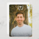 An elegant, gender neutral, graduation photo announcement to celebrate those obtaining MD medical degrees. Featuring a full-bleed photo on the front with overlaid text and the caduceus symbol (with the 'MD' abbreviation) surrounded by a laurel wreath. The template text for the graduate’s details is completely customisable, so the font size, style, color and placement can be changed. The back features a second smaller photo and template text for a longer message. The design is available in other colors, with an Asclepius symbol, with designs for specific qualifications (RN, DO) and with different layouts/orientations in my store.