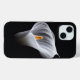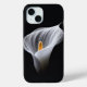 Delicate white lines of a calla lily blossom swirl gracefully around a central orange stamen