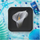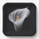 Delicate white lines of a calla lily blossom swirl gracefully around a central orange stamen