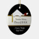 Graduation ornament trinket features a white cap and diploma with customizable text and year. Cassic round design suitable for male or female, high school or college.