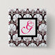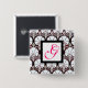 WHITE CARNATIONS DAMASK MONOGRAM pink fuchsia Pinback Button